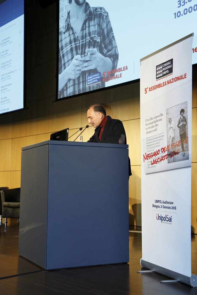 “NESSUNO DEVE ESSERE LASCIATO SOLO” è lo slogan che abbiamo individuato per questa 5° Assemblea Nazionale dei CRU Unipol. Per il nostro gruppo assicurativo questo slogan vuole essere un modo per richiamare una volta di più il ruolo sociale dell’assicurazione.